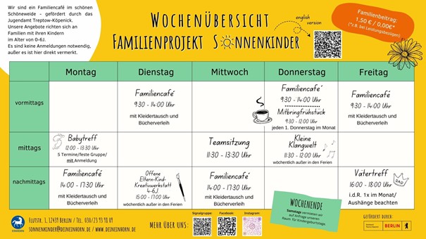 Eine Übersicht unserer wöchentlichen Angebote findet ihr in unserer Wochenübersicht: