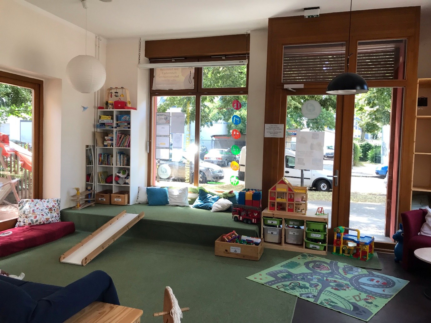 Willkommen in unserem großen Wohnzimmer für Familien! Im offenen Familiencafé treffen sich Eltern, Kinder und Betreuungspersonen zum Austausch, Entspannen und Spielen.